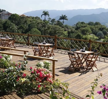 Nosso espaço fica em um lugar tranquilo, perfeito para eventos, com pousada e restaurante integrados.